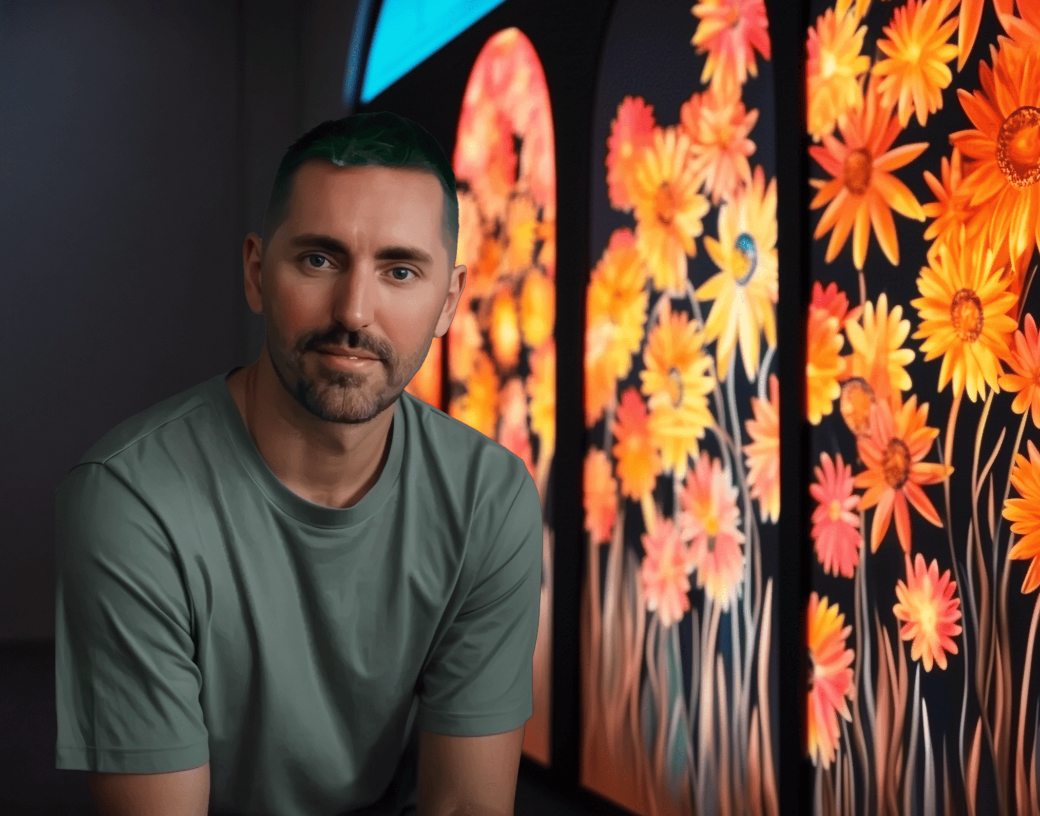 With a family history of florists spanning three generations, the artist’s grandmother, mother and sister all arranged real-life blooms. In this work, the artist explores enduring connections between landscape, identity and kinship through vibrant artistic forms.