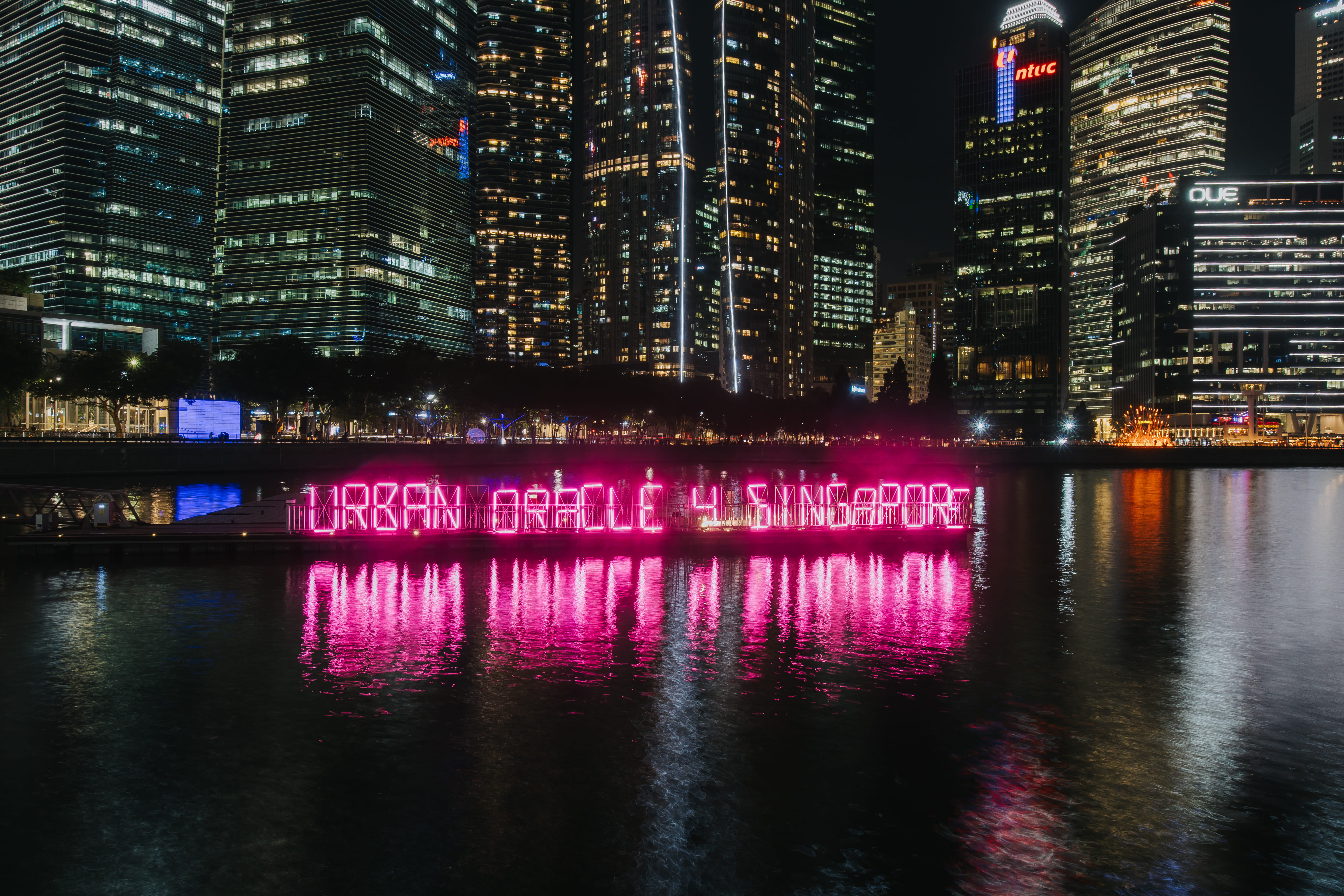 Red buttons stand at three points along the boardwalk. When pressed, light pulses through the letters steadily like a heartbeat, triggering thought-provoking AI-generated messages inspired by Singapore’s past, present and future.